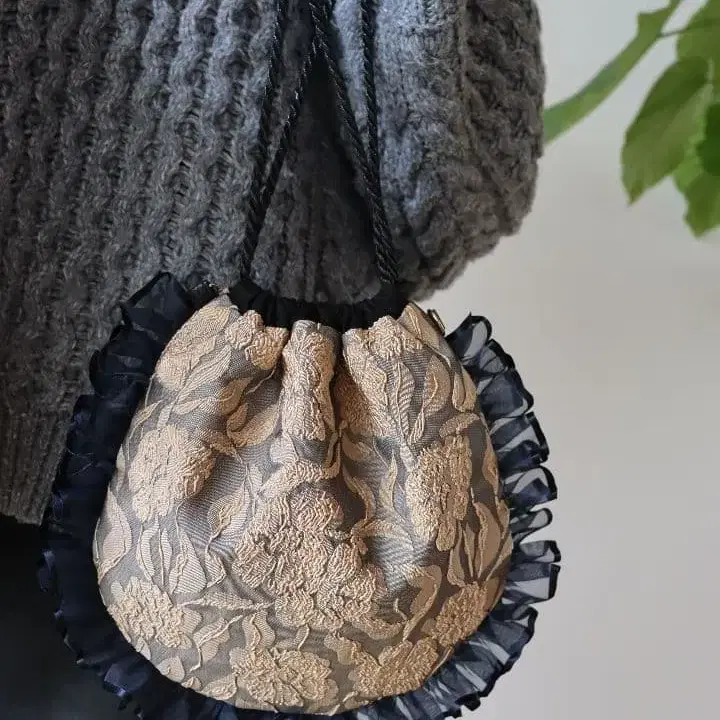 입체감이 있는 꽃무늬 자카드 원단을 사용한 존재감 넘치는 복조리 백입니다!