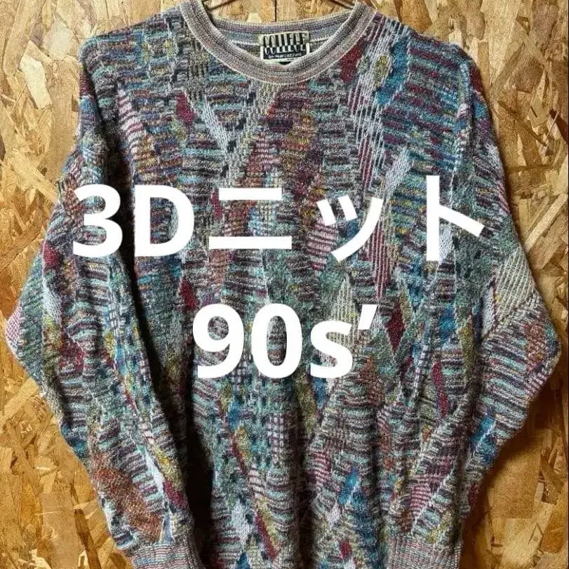 쿠기 스타일 3D 니트 스웨터 멀티 컬러 올 패턴 90s 구제 의류