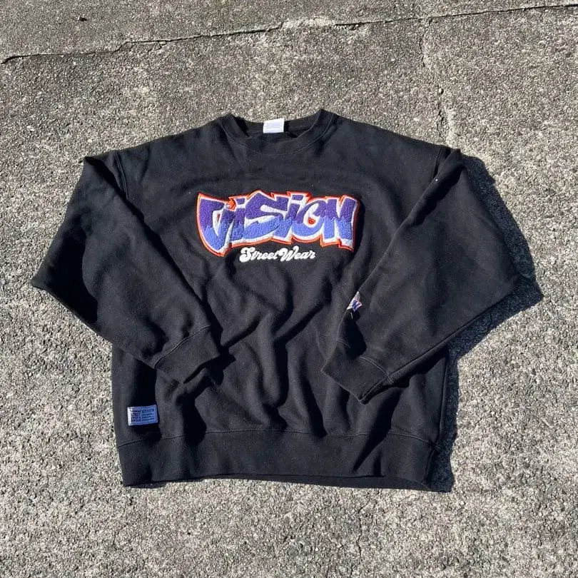 블랙 그래픽 프린트 맨투맨 스트릿 자수