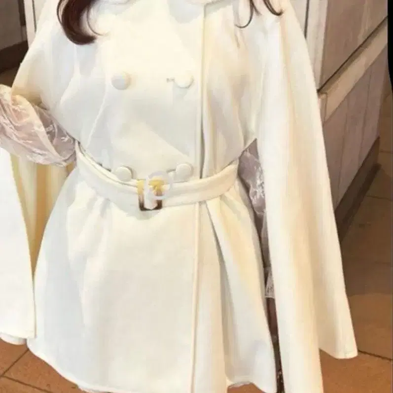 옷깃 퍼 베스트 포함 케이프 코트 새상품급