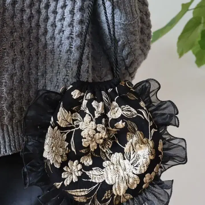 ● 설날 특별 가격!!! 입체감이 있는 꽃무늬 자카드 원단을 사용한 존재감 넘치는 복조리 백입니다! 차분한 블랙 베이스에 고급스러운 광택이 있는 꽃무늬가 돋보이며, 코디네이트의 악센트로 딱이에요 ♡ 가장자리에는 비침이 있는 프릴을 사용하여, 달콤함 속에서도 어른스러움을 느낄 수 있는 디자인으로 완성했습니다. 안감은 트윌의 탄탄한 원단을 사용하여, 모양이 망가지기 어렵고 안심하고 사용하실 수 있습니다. 반지갑, 스마트폰, 열쇠가 넉넉히 들어가는 사이즈감입니다. D링이 달려 있어, 가지고 계신 숄더 스트랩을 달면 숄더백으로도 사용하실 수 있습니다. 가벼운 외출부터 서브 백으로도 활용 가능합니다! ● 대략적인 사이즈 (프릴 제외) 23cm x 23cm 바닥 없음 ● 소재 겉감 자카드 원단 안감 트윌 ※ 핸드메이드 작품이므로 약간의 오차가 있을 수 있습니다. 양해 부탁드립니다.