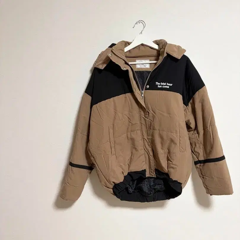 ENVYM 후드 부착 다운 자켓 베이지/블랙 코트 아우터