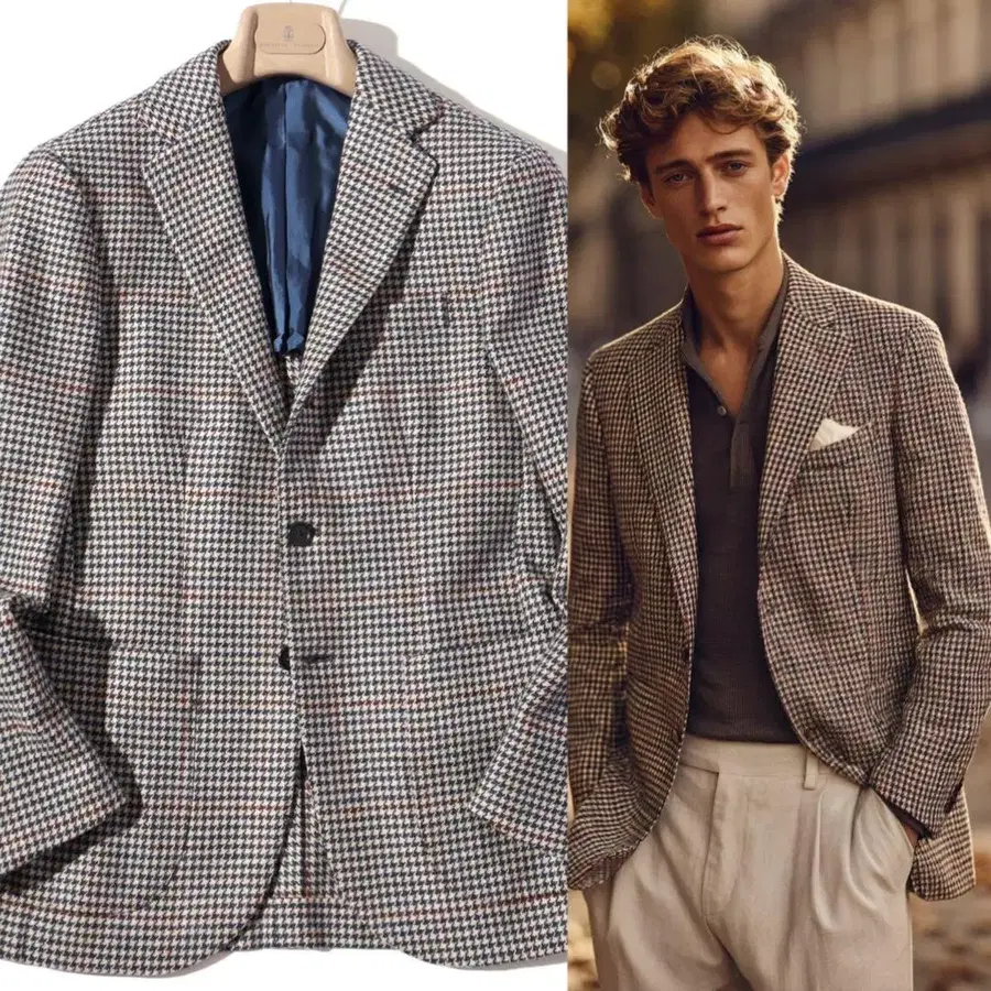 여기에 네이비와 레드의 섬세한 하운드 투스 패턴이 겹쳐져 클래식하면서도 너무 딱딱하지 않은 절묘한 표정을 만들어냅니다.