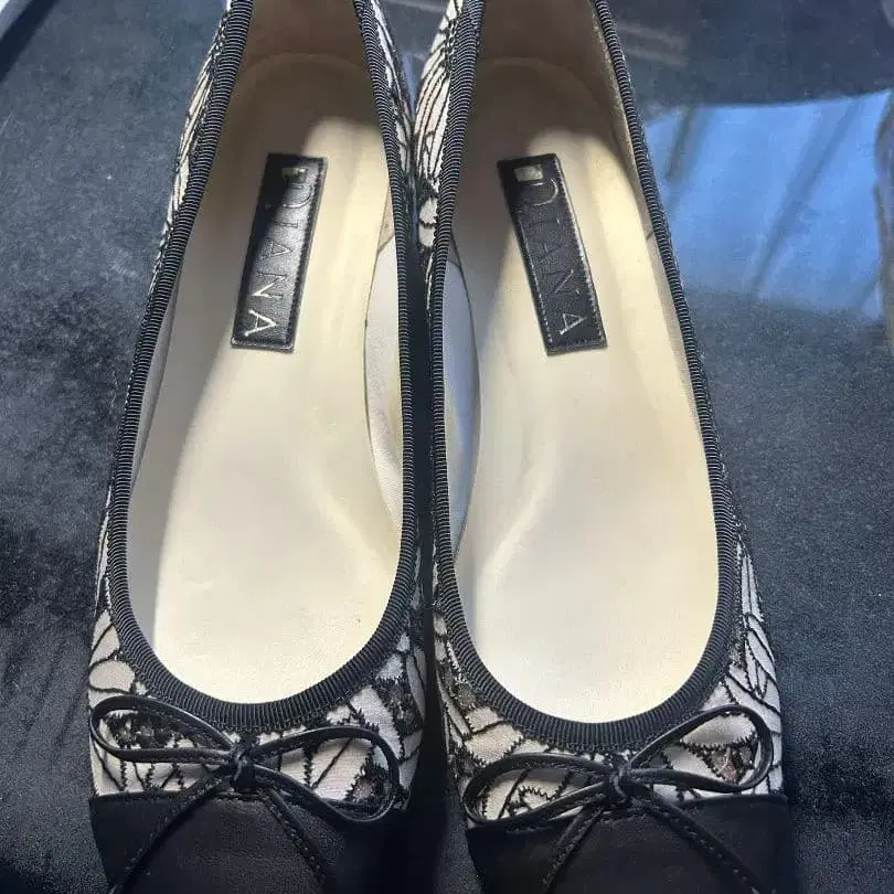 화이트와 블랙 원단으로 된 리본 포함 플랫 펌프스. 레이스 장식. 2번만 착용했습니다. 안쪽 다이애나 글씨가 벗겨졌으니 양해 부탁드립니다. 종이상자에 포장하여 보내드립니다. 잘 부탁드립니다. - 브랜드: DIA - 색상: 화이트/블랙 - 디자인: 플랫 펌프스 - 굽 높이: 플랫 - 장식: 리본 포함 - 소재: 원단 방문해 주셔서 감사합니다.