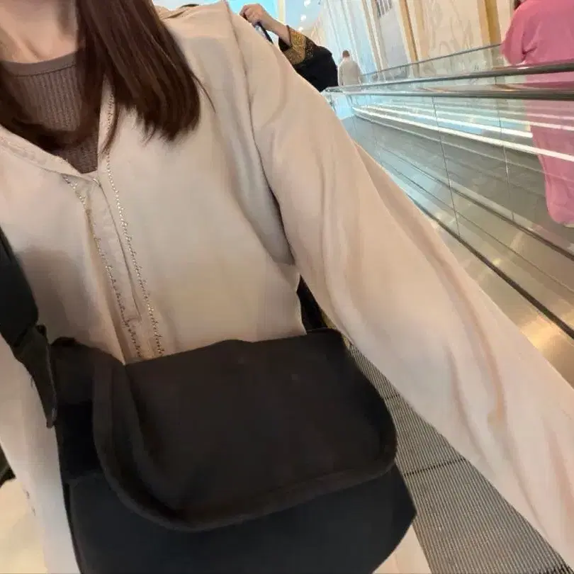 모스크는 머리부터 발목까지 가리지 않으면 입장이 불가하므로, 후드 부착, 프론트 오픈이라 간편하게 걸칠 수 있고 탈의도 쉬운 이 아바야가 매우 편리했습니다. (히잡 불필요)