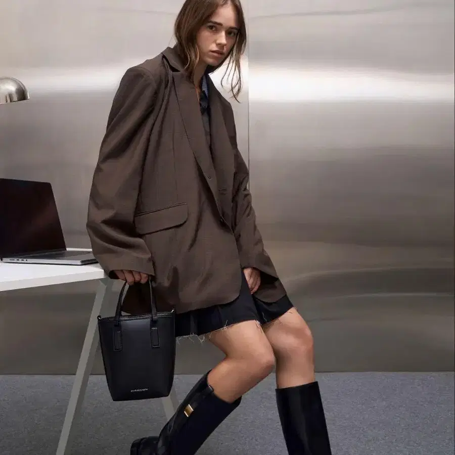 노엘 포 스웨이드 퍼 트리밍 일롱게이티드 토트 블랙