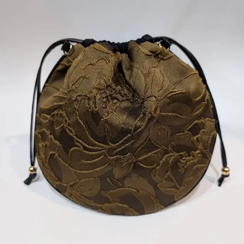 ● 설날 특별 가격!! 카키 색상의 고급스러운 원단에 입체적인 꽃무늬가 시선을 사로잡는 복조리입니다. 프릴을 의도적으로 생략하여 같은 사이즈감에도 불구하고 깔끔한 인상을 줍니다. 패턴의 존재감과 실루엣의 아름다움이 돋보이며, 코디네이트를 세련되게 만들어 줍니다. 복조리 끈에는 가죽 코드를 사용하여 고급스럽고 우아한 마감으로 완성했습니다. 캐주얼하지 않으면서도 모던하고 시크한 스타일에 잘 어울립니다. 반지갑, 스마트폰, 열쇠가 충분히 들어가는 사이즈입니다. D링이 있어 가지고 계신 숄더 스트랩을 연결하면 숄더백으로도 활용 가능합니다. 가벼운 외출부터 서브 백으로도 활용하기 좋습니다! ● 대략적인 사이즈(프릴 없음) 23cm x 23cm 바닥 없음 ● 소재 겉감: 자카드 원단 안감: 트윌 ※ 핸드메이드 작품으로 약간의 오차가 있을 수 있습니다. 양해 부탁드립니다.