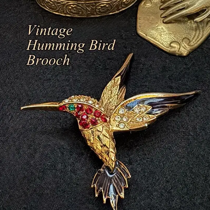 자동 번역되었어요. 원문보기화려한 큐빅을 장식한 빈티지 벌새 브로치.