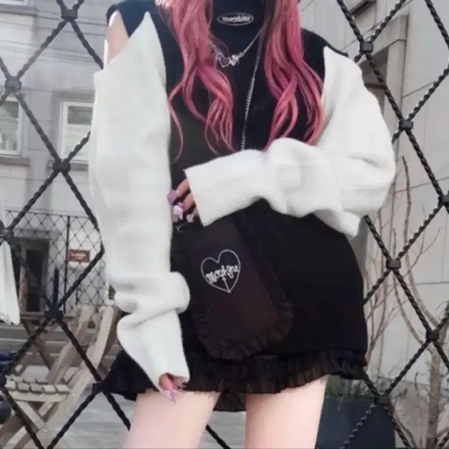 MORPH8NE 모피인 오픈 숄더 니트 스웨터 원피스