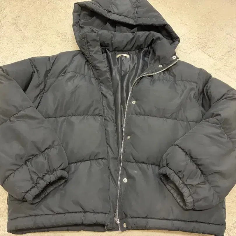 블랙 후드 부착 다운 자켓