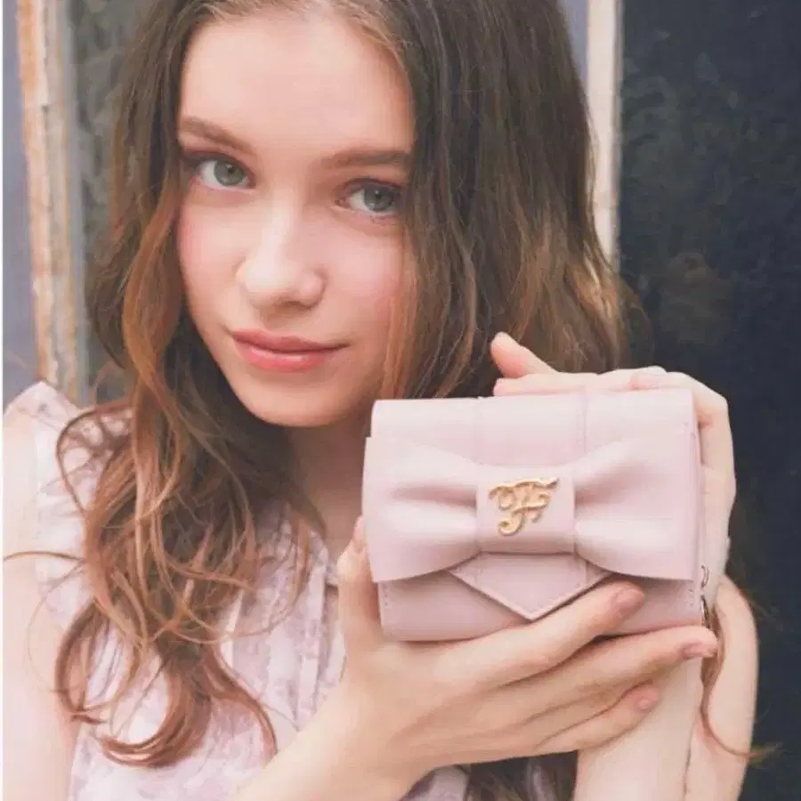 메종 드 플뢰르 리본 포함 핑크 3단 폴더형 지갑