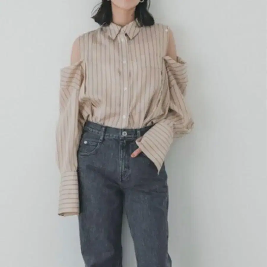 PUBLIC TOKYO 베이지 스트라이프 셔츠 프리 사이즈