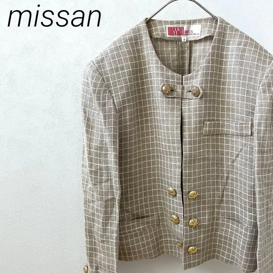 missan 노카라 자켓 체크 무늬 포켓 부착 골드 버튼 레트로