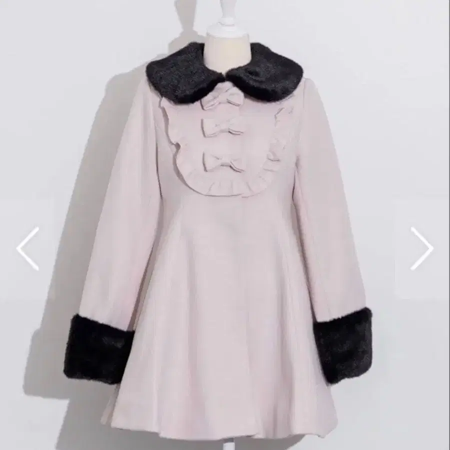 요크 프릴 리본 도리 코트 블랙 x 핑크
