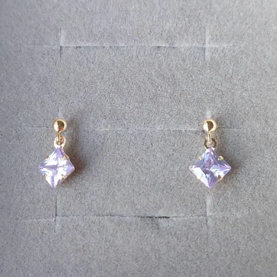 미사용 츠츠미 큐빅 지르코니아 보라색 계열 컬러 귀걸이 스퀘어 K10