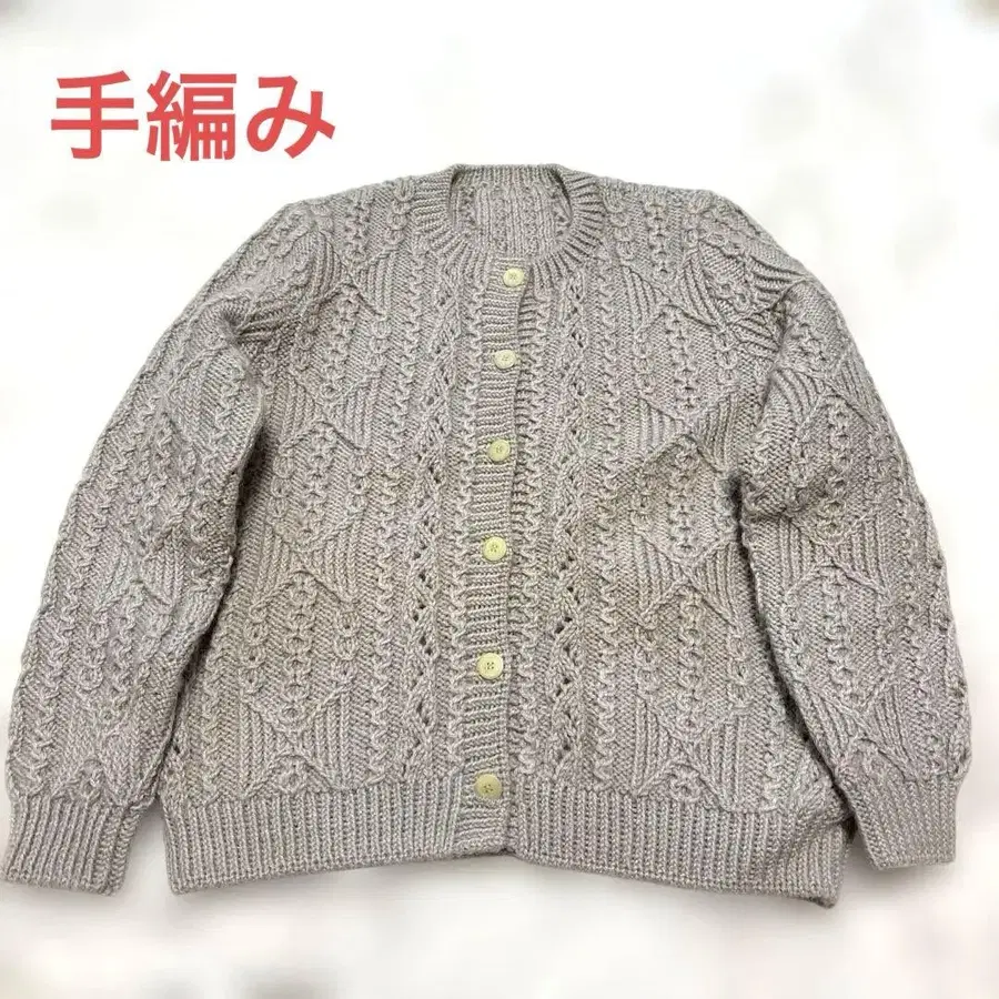 그레이 베이지 라메사 케이블 짜임 니트 가디건 손뜨개질