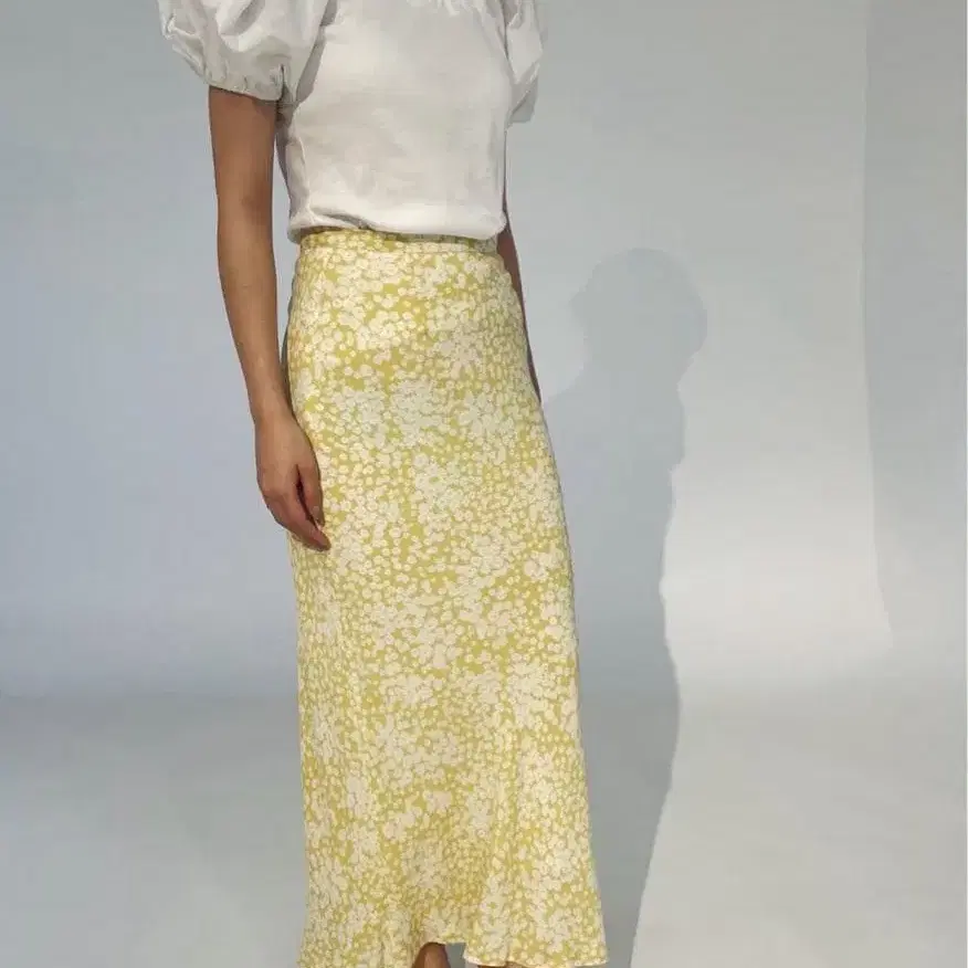 • 레오나르 플라워 프린트 스커트 무릎 기장 화이트/블루