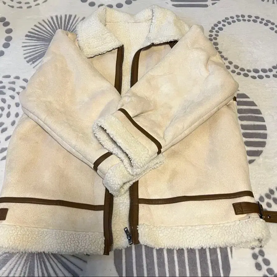 보아 소재의 지퍼 달린 무스탕 코트, 크림색과 베이지색의 콤비네이션. - 색상: 베이지. 사진 2장은 이미지입니다. 색상은 1장입니다. - 사이즈: FREE - 중량: 860g - 디자인: 지퍼 부착, 후드 부착, 보아 소재 방문해 주셔서 감사합니다. 사이즈 - FREE SIZE