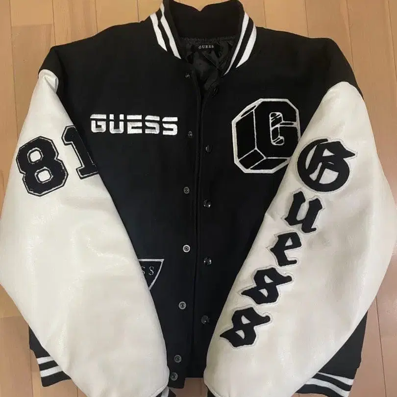 GUESS 바시티 자켓 블랙/화이트 M 사이즈