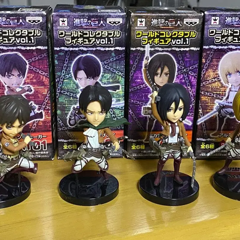 진격의 거인 월드 컬렉터블 피규어 vol.1의 4체 세트입니다. 리바이, 엘렌, 미카사, 알민 상자에 변색, 찢김이 있습니다. 양해 부탁드립니다. 방문해 주셔서 감사합니다.