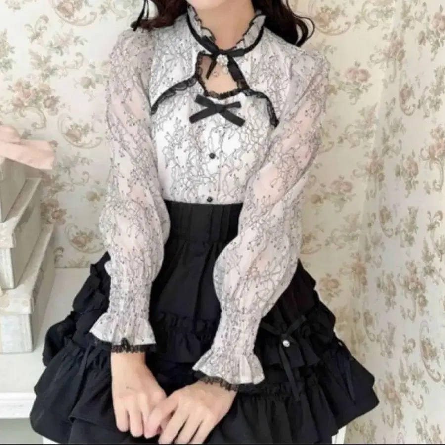 ROJITA 배색 레이스 긴팔 상의 로지타