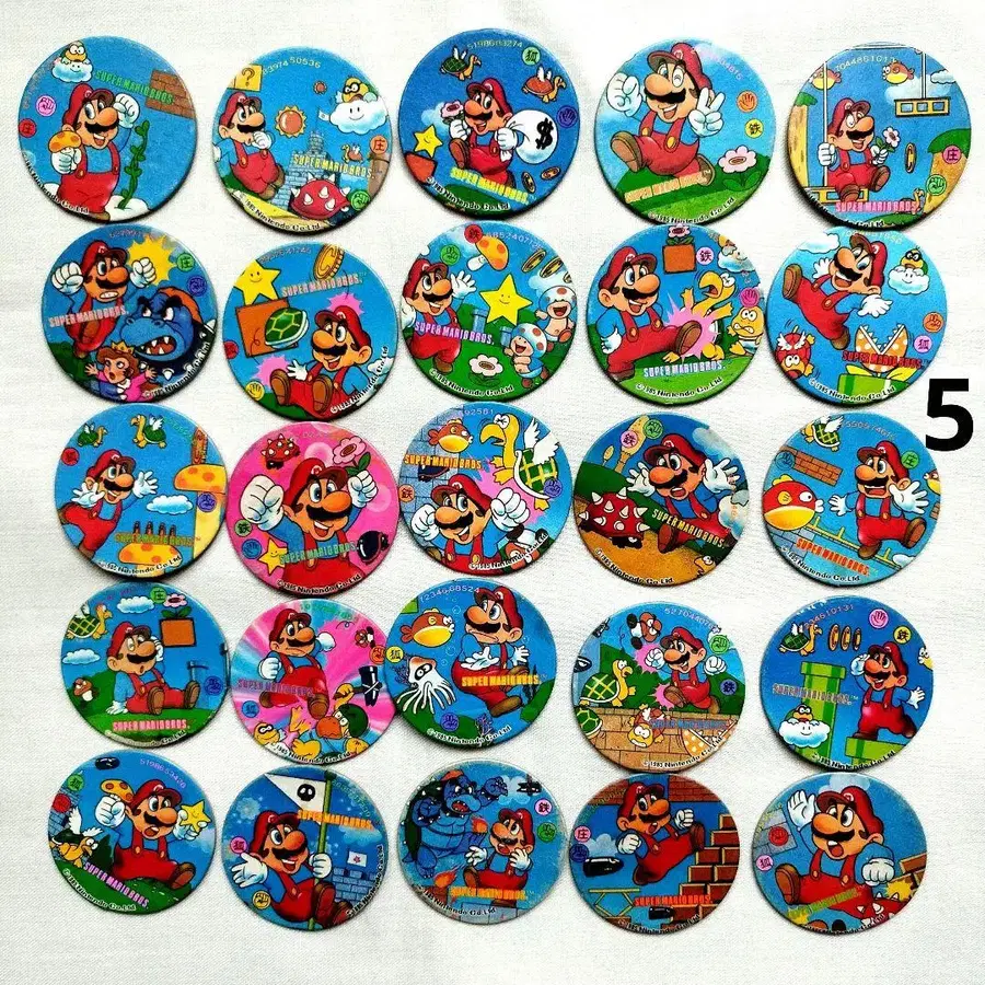 5 쇼와 레트로 당시물 슈퍼 마리오 브라더스 딱지 원형 딱지 25장