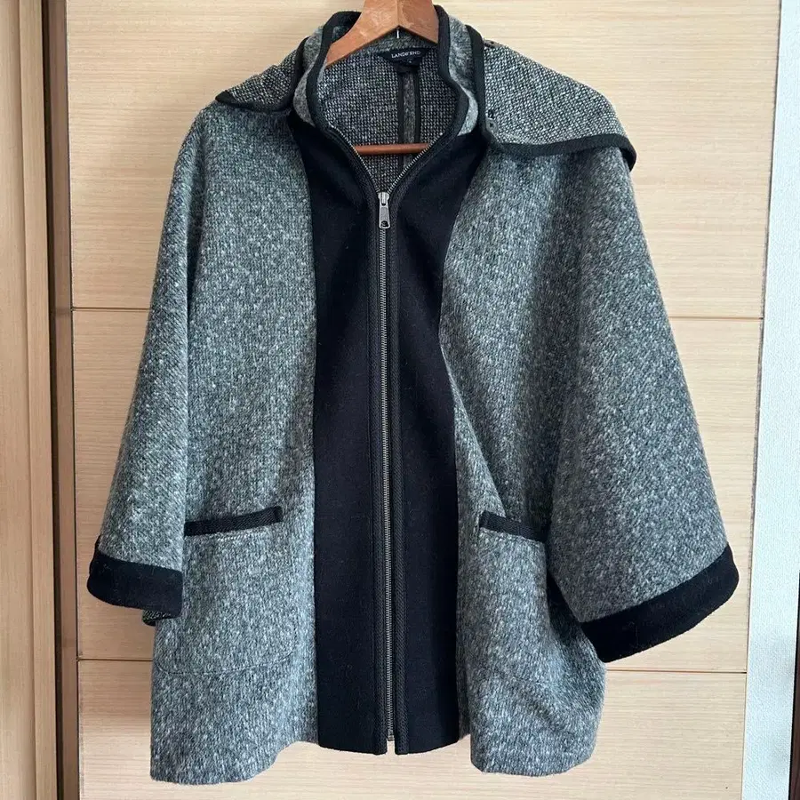 새상품급 랜드스엔드 그레이 울 판초형 코트