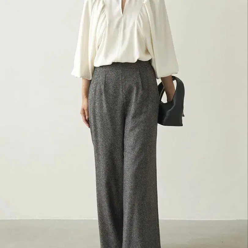 울 슬랙스 이지 팬츠 드로우 스트링 다크 그레이 일본제