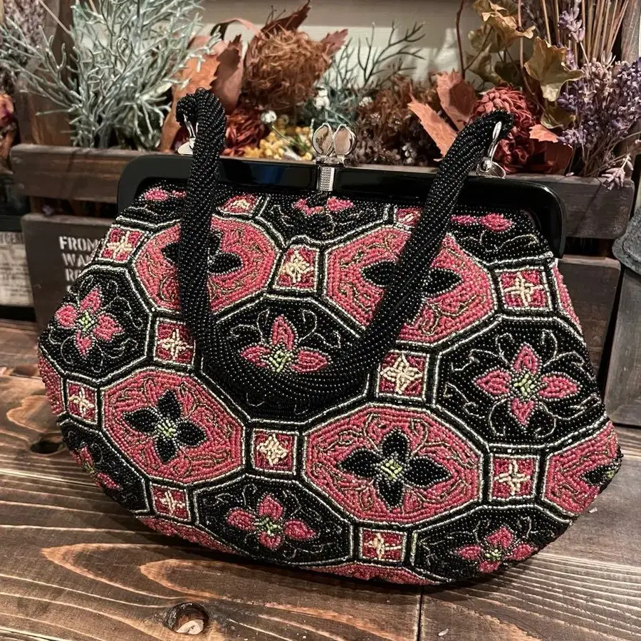 전체 비즈 자수 가마구치 백 파티 레트로 빈티지