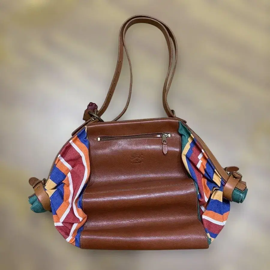 일비종떼 브라운 가죽 스트라이프 핸드백 캔디백