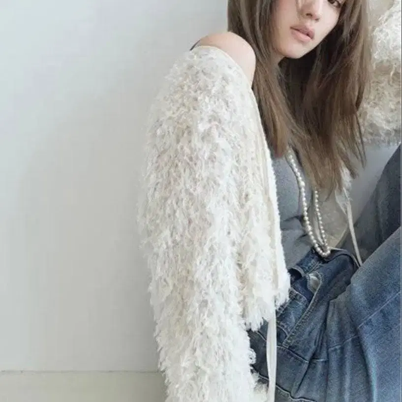 FRAY I.D 페더 리본 가디건 아이보리 화이트