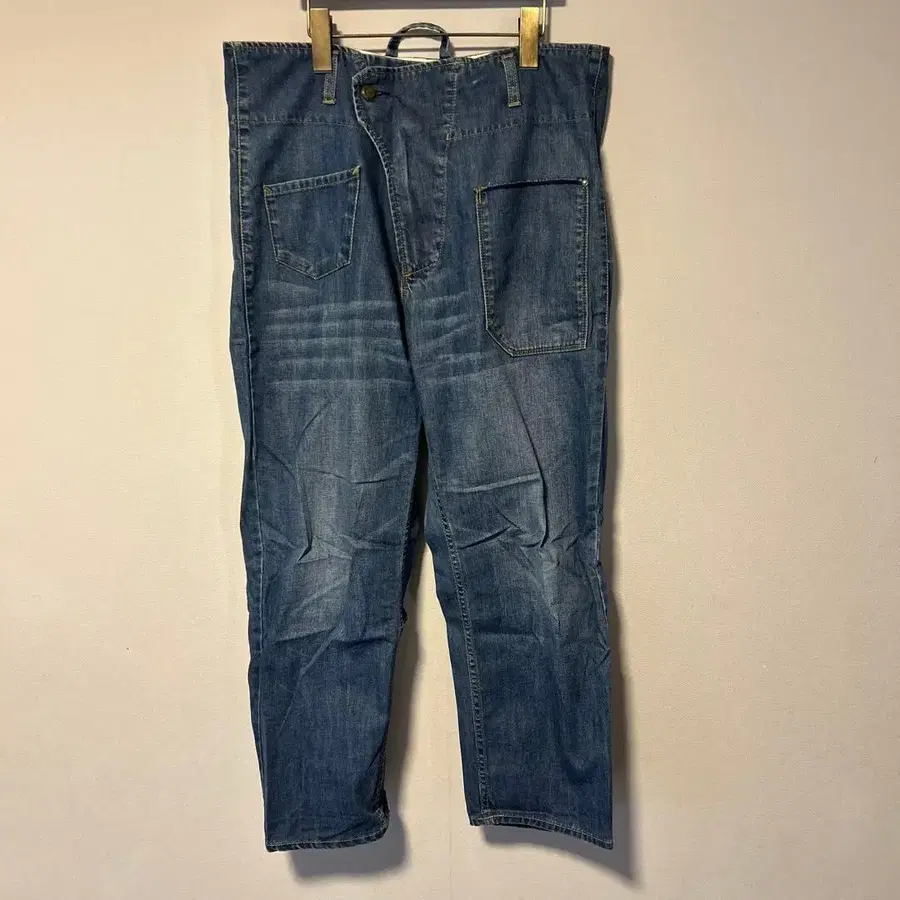 WAFFLISH WAFFLE 파랑 데님 팬츠 포켓 부착 캐주얼