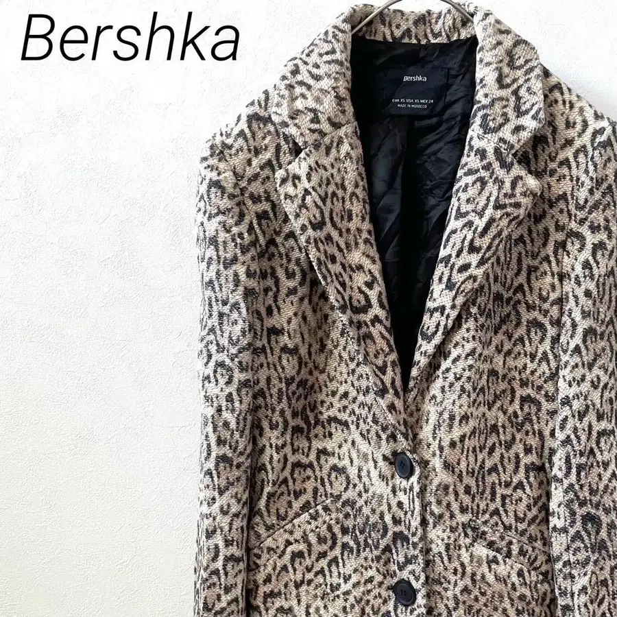 Bershka 체스터 코트 롱 코트 레오파드 무늬 포켓 부착 안감 부착