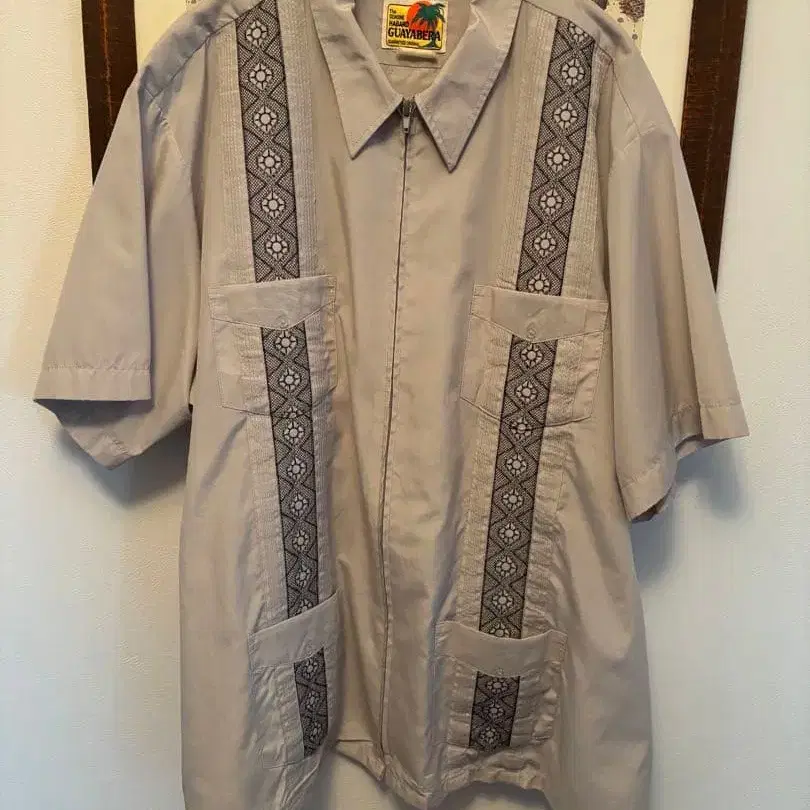 GUAYABERA 반팔 셔츠 그레이 자수 포함