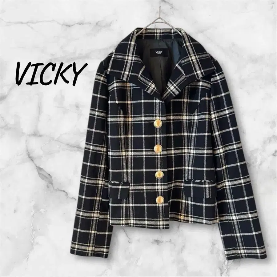비키 테일러드 자켓 코트 아우터 코트 체크 무늬