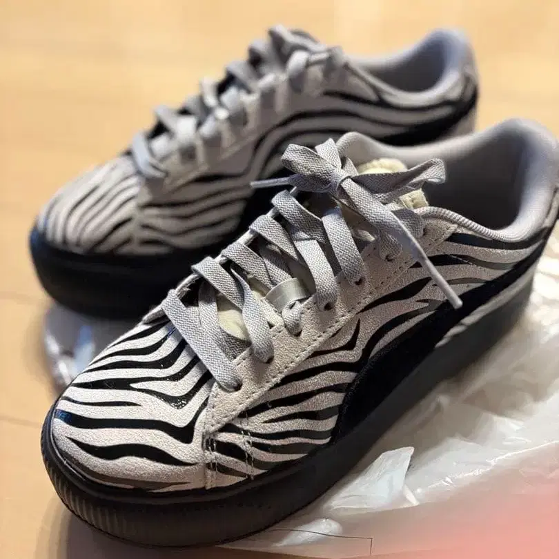새상품 미사용 PUMA 푸마 통굽 제브라 패턴 스니커즈 화이트/블랙