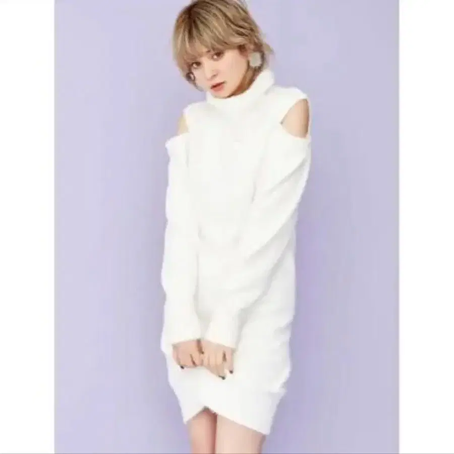 오프숄더 니트 미니 원피스 화이트 겨울 의류 다즈린