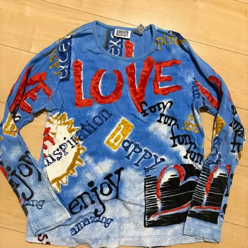 Y2K 그래픽 상의 롱T 화려한 디자인 LOVE 하트 구제 의류