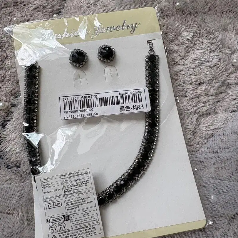 블랙 컬러 비즈 목걸이 귀걸이 세트