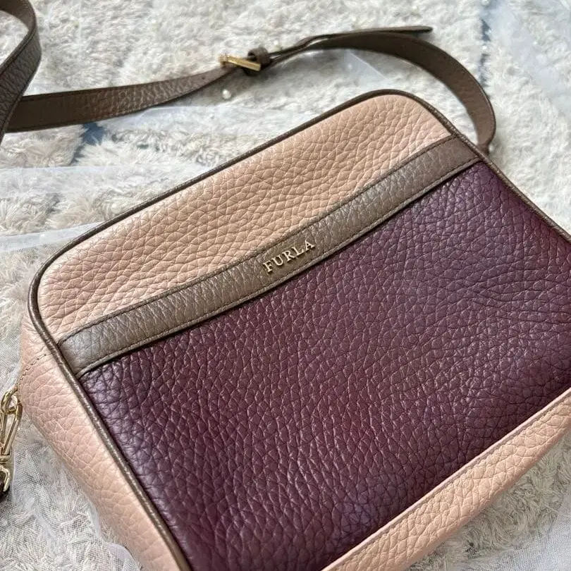 FURLA 가죽 숄더백 베이지/와인 레드