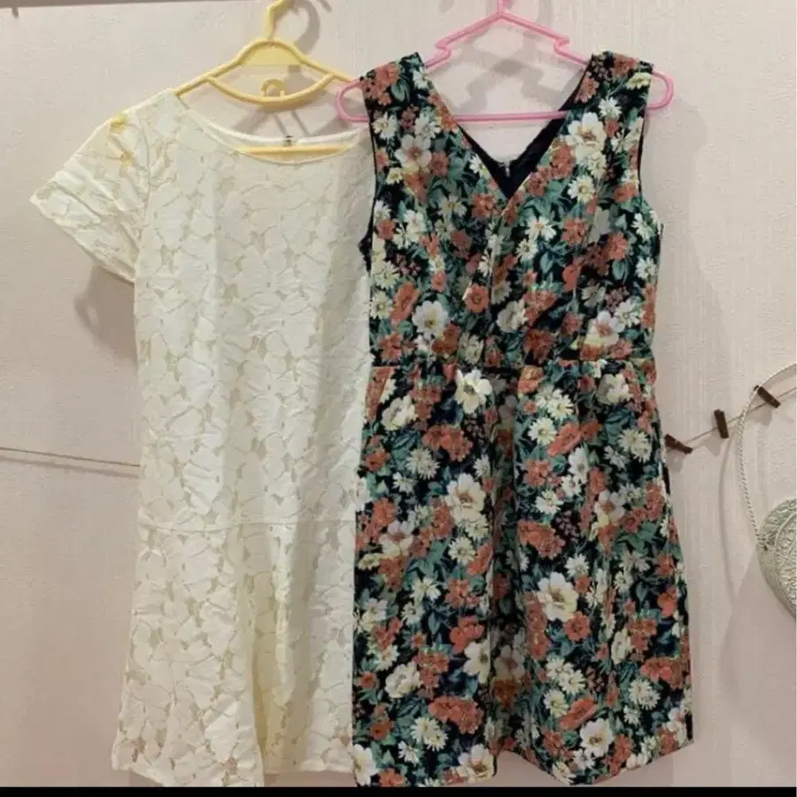 여성용 원피스 세트 화이트 꽃무늬