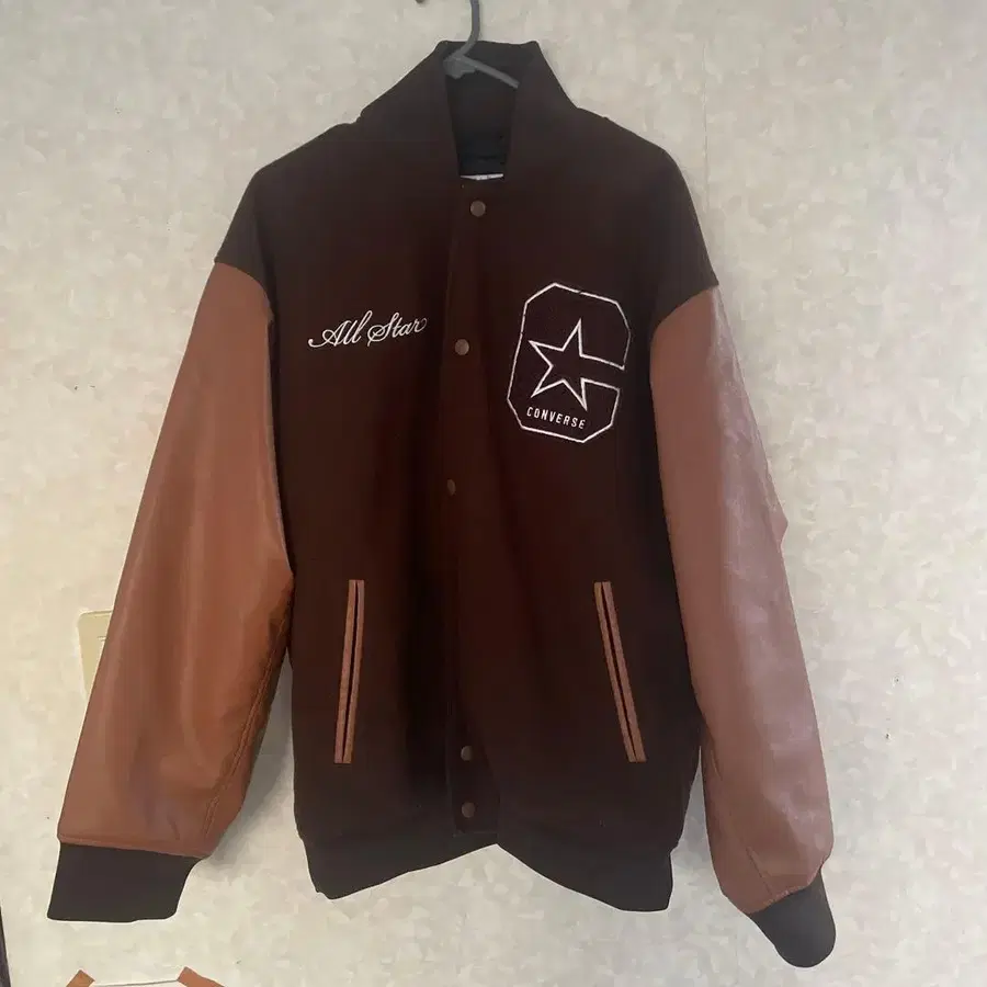 CONVERSE 바시티 자켓 L 사이즈 브라운/베이지