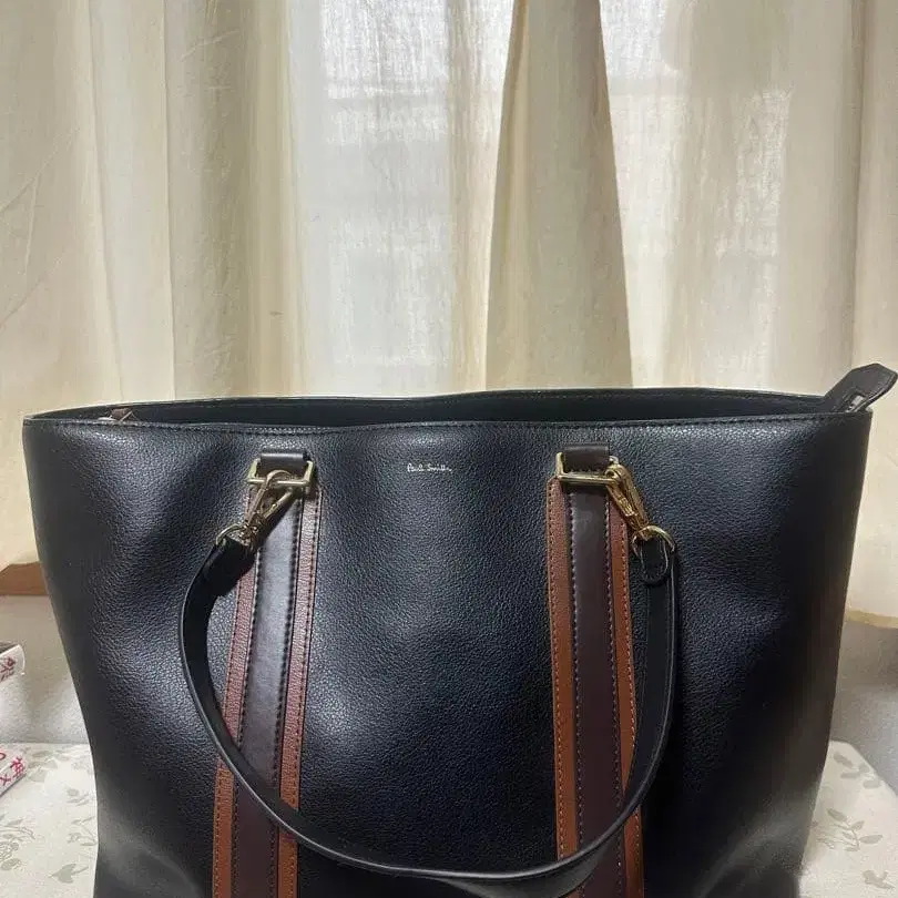 스트라이프 디자인의 블랙 토트백, 지퍼 포켓이 있는 2층 구조. 모양은 단단하게 유지되고 있지만, 부착되어 있던 금장 장식이 떨어져 새로운 손잡이로 교체했습니다. 겉면은 교체가 완료되었지만, 뒷면은 교체가 완료되지 않았습니다. 또한, 연말연시이므로 우체국의 사정으로 발송이 지연될 수 있습니다. 양해해 주시는 분만 구매 부탁드립니다. - 색상: 블랙 - 디자인: 스트라이프 디자인 - 내부 구조: 지퍼 포켓이 있는 2층 구조 방문해 주셔서 감사합니다. 폴스미스 Paul Smith 폴 스미스 PaulSmith 비즈니스 백 여성용 비즈니스 백 여성용 백 출퇴근용 백 업무용 백 오피스 백 A4 수납 A4 대응 PC 수납 서류 가방 토트백 핸드백 숄더백 2way 3way 가죽 천연 가죽 소가죽 블랙 블랙 네이비 브라운 심플 고급 성인 여성 깔끔한 포멀 출퇴근 통학 브랜드 가방 백화점 브랜드 정품