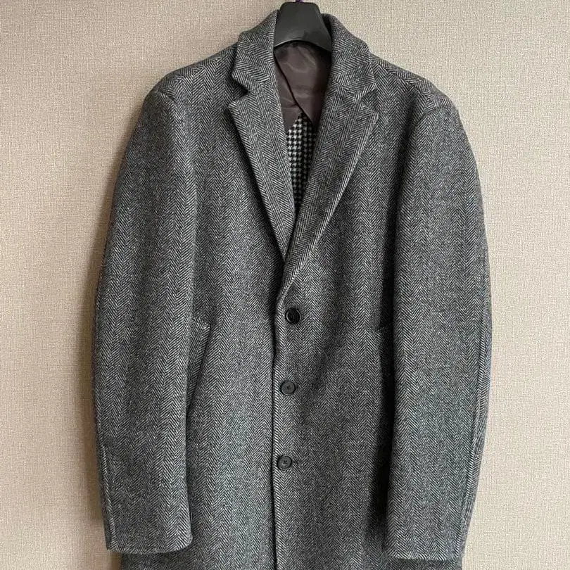 새상품급 고급 라인 뉴요커 해리스 트위드 체스터 코트 M 호두 단추