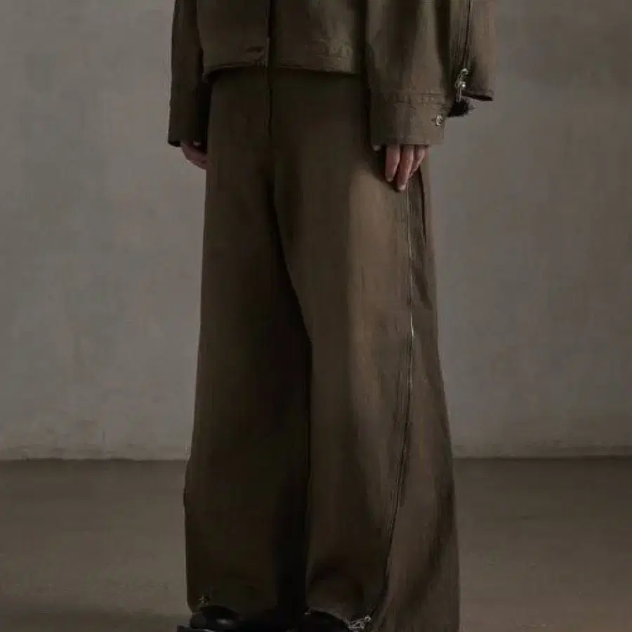 GRANCY 지퍼 디자인 배기 데님 브라운