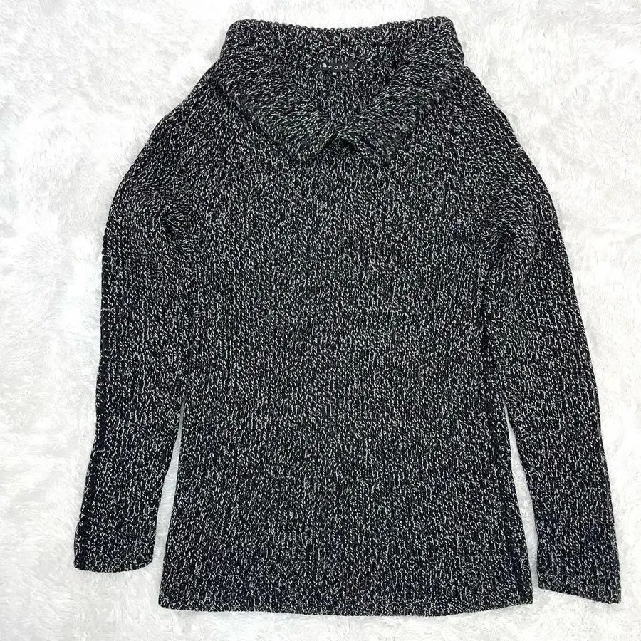 에스트네이션 카라 부착 니트 7부 소매 블랙 깔끔한