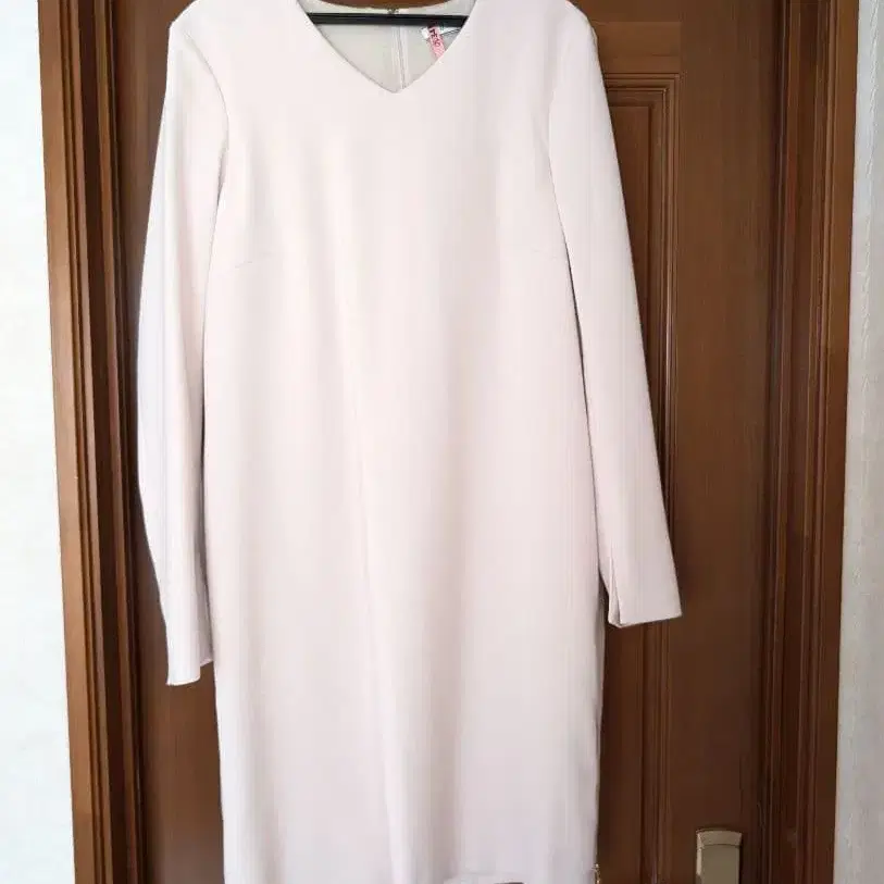 BEIGE 라이트 핑크 V넥 긴팔 원피스