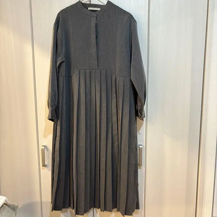 미라 오웬 스탠드 칼라 플리츠 롱 원피스