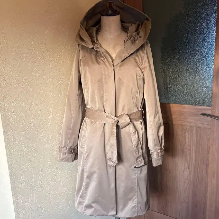 • 캔 데이 베이지 후드 부착 롱 코트 L