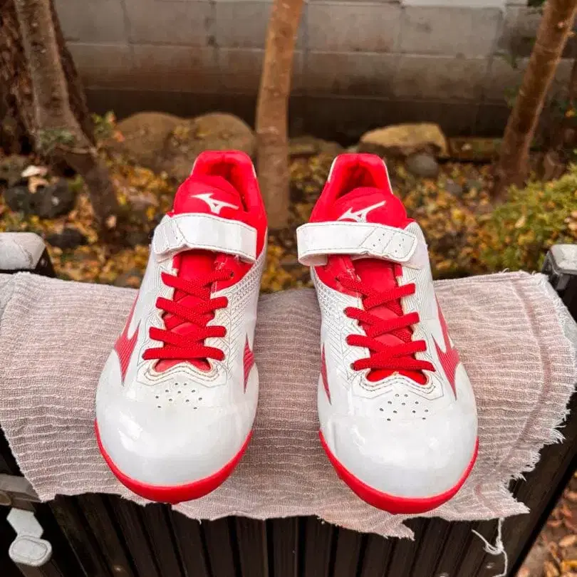 미즈노 스파이크 슈즈 화이트/레드 23cm
